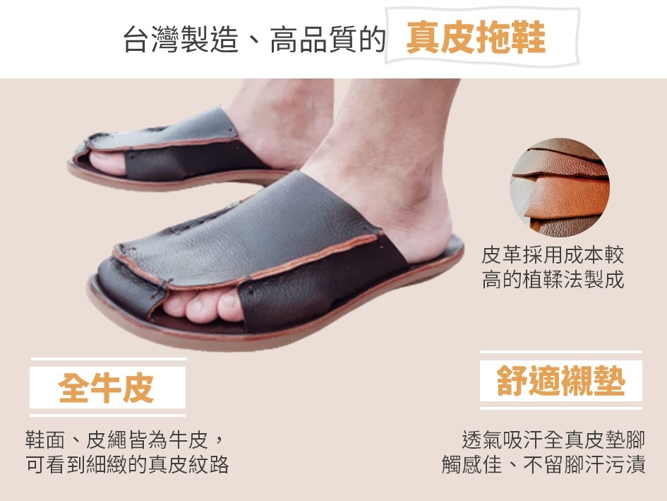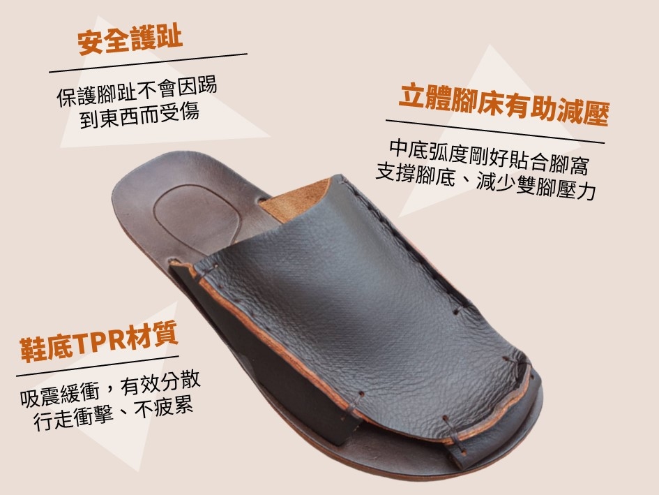真皮護趾拖鞋 平底 #R1319