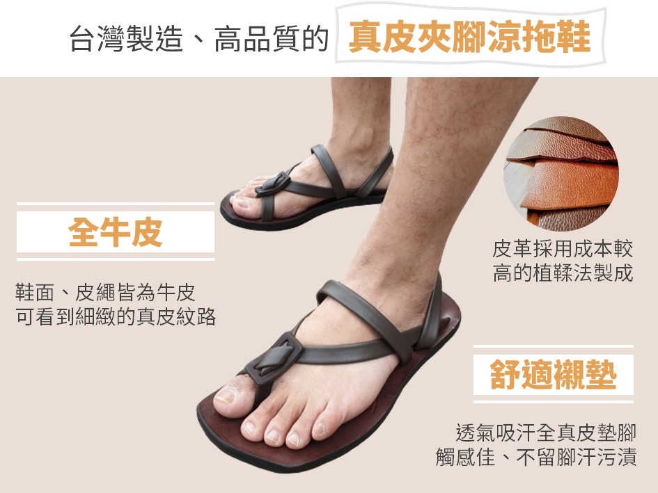 兩穿★特軟小牛皮 素面夾腳男拖鞋/涼鞋 #R1405