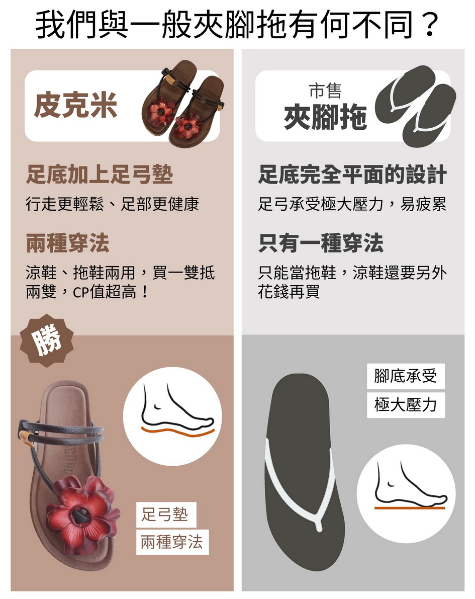 兩穿★手工真皮花朵 厚底夾腳女涼拖 -紅 #355