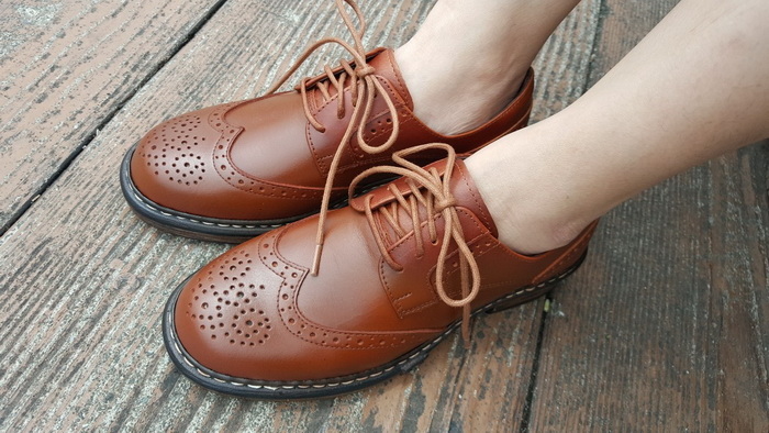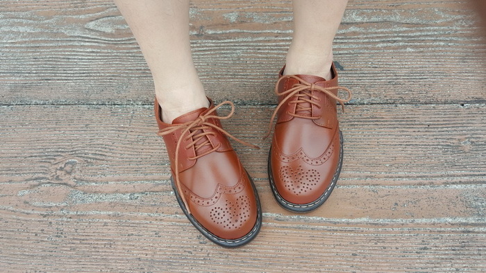 【木紋底】牛津翼紋雕花跟鞋-油深棕 #1707