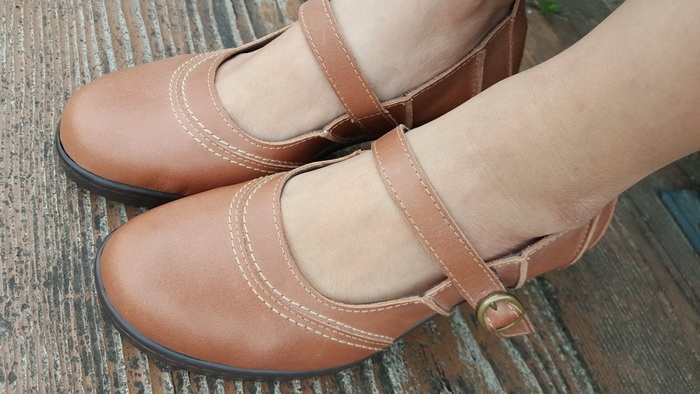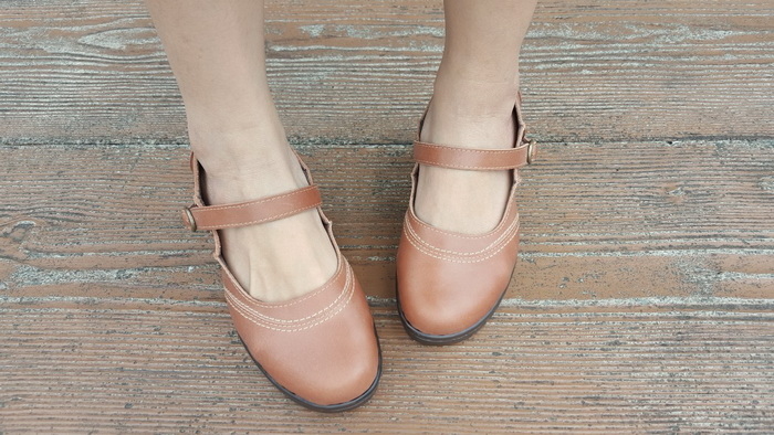 【粗跟】魔鬼粘扣帶高跟鞋-棕 #N-C03